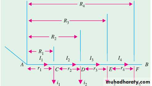 where i × l = I total current entering at point Ar × l = R the total resistance of distributor AB.