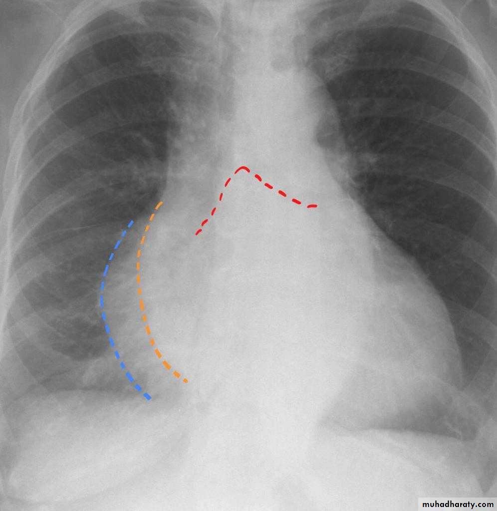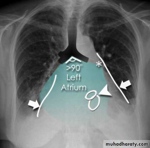 2.double density sign: the right side of the enlarged left atrium pushes into the adjacent lung and creates an addition contour superimposed over the right heart