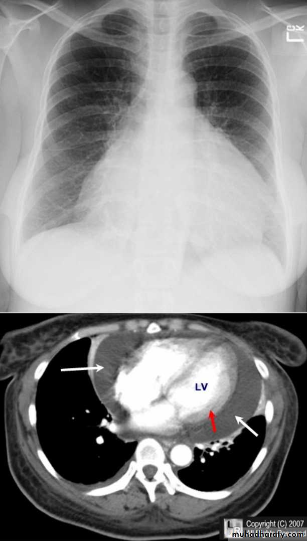 Plain radiographa very small pericardial effusion can be occult on plain film