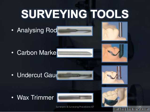 7- surveying tools → ( analyzing rod , carbon marker , undercut gauge , wax trimmer)
