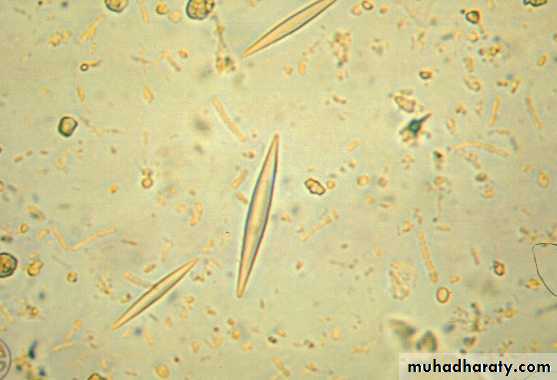 Charcot-Leyden Crystals in feces Charcot-Leyden crystals stained by