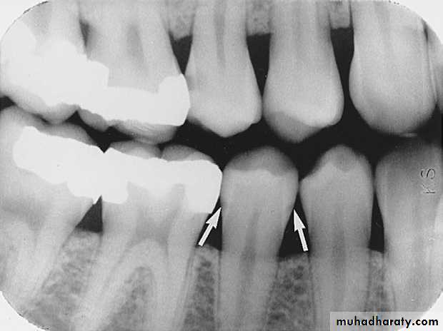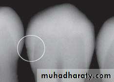 The term interproximal means “between two adjacent surfaces.”Caries found between two teeth is termed interproximal caries.Interproximal Caries