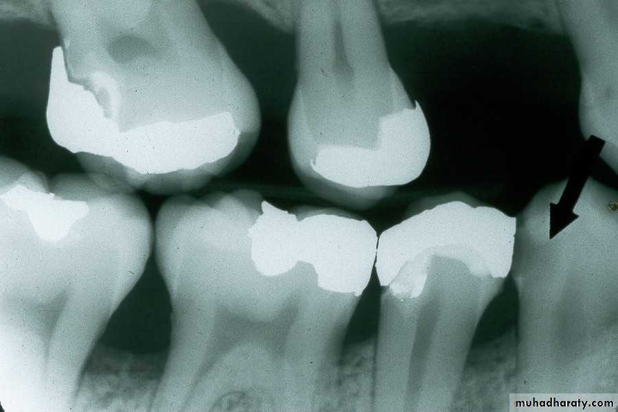 2- Limitations of two-dimensional film, The extent of carious involvement can not be seen in a buccolingual (cheek to tongue) direction.
