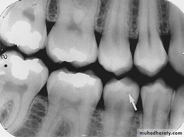 Often not sufficient detail to see incipient caries but is Often the best view to see occlusal caries.