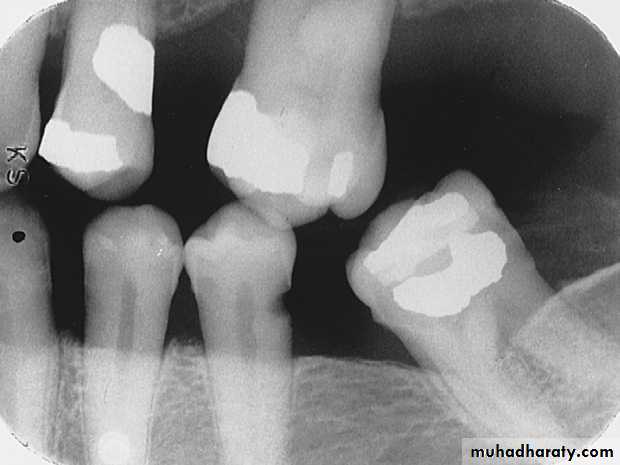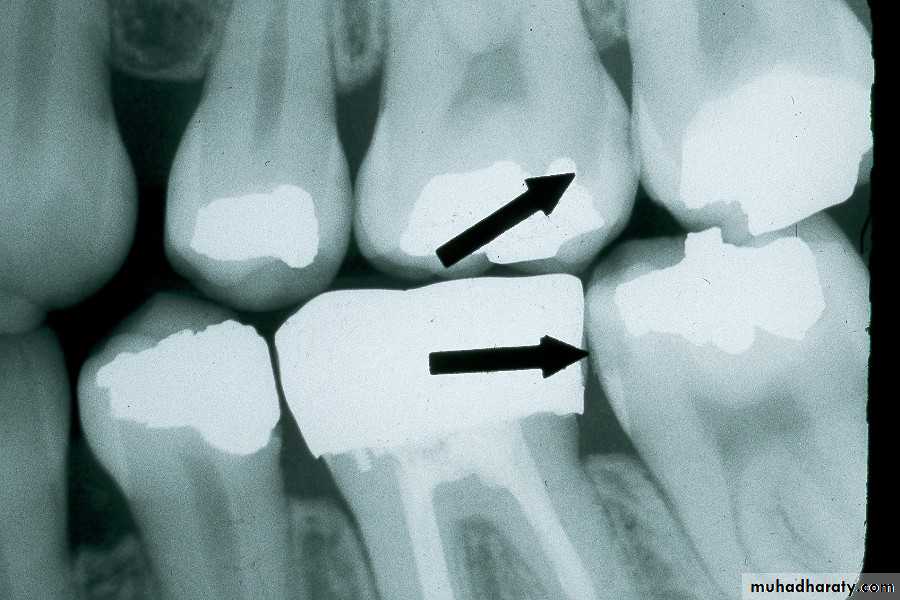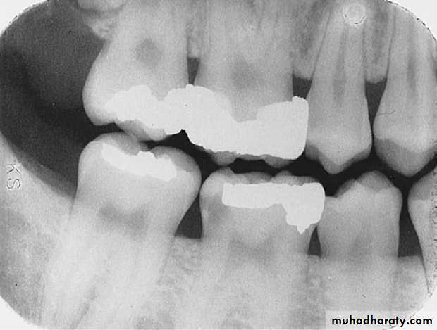 3- X-ray beam angle (horizontal or vertical), This is especially important when trying to identify recurrent caries, since changes in angulation may cause the superimposition of the existing restoration with the carious lesion.