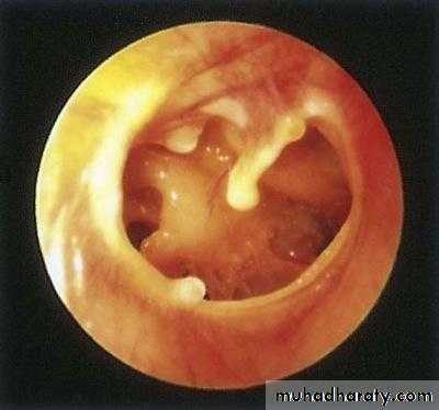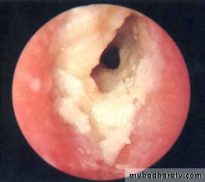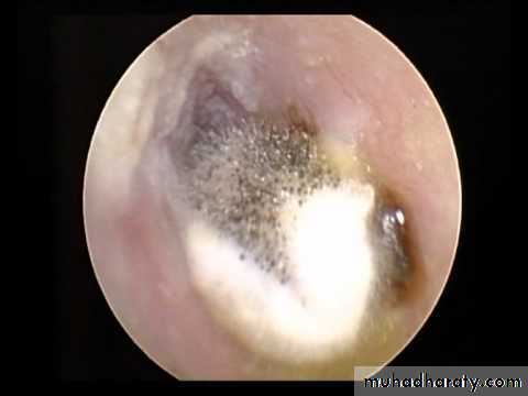 Otomycosis: due to candida albicans (white) or aspergillus niger (dots) both called wet newspaper.