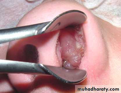 Inspect tongue, buccal mucosa and oropharynx