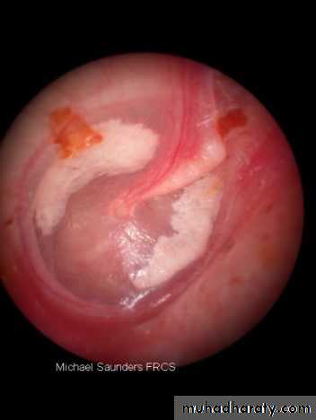 Causes: untreated acute otitis media(commonest) + traumaMedical treatment: long term antibiotics.