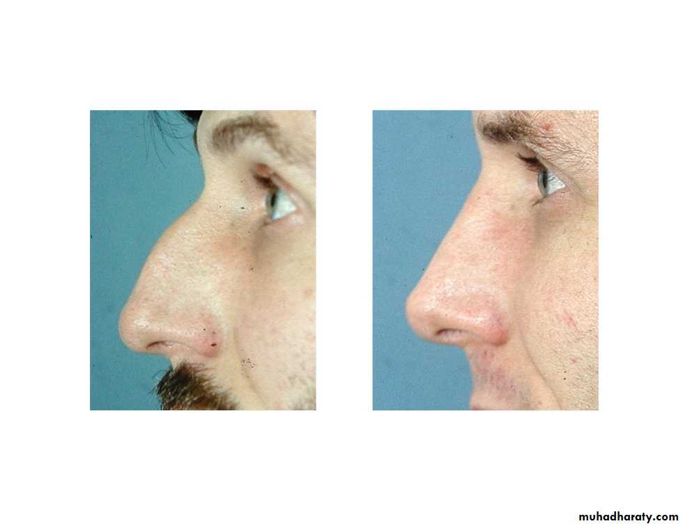 High arched nose=roman nose=prominent nose Congenital, Trauma.