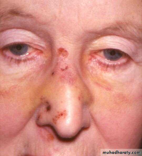 Treatment: carbon dioxide laser or complete excision with skin graft)