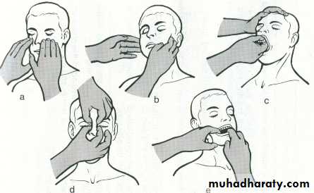 Finger examination of floor of mouth, cheeks