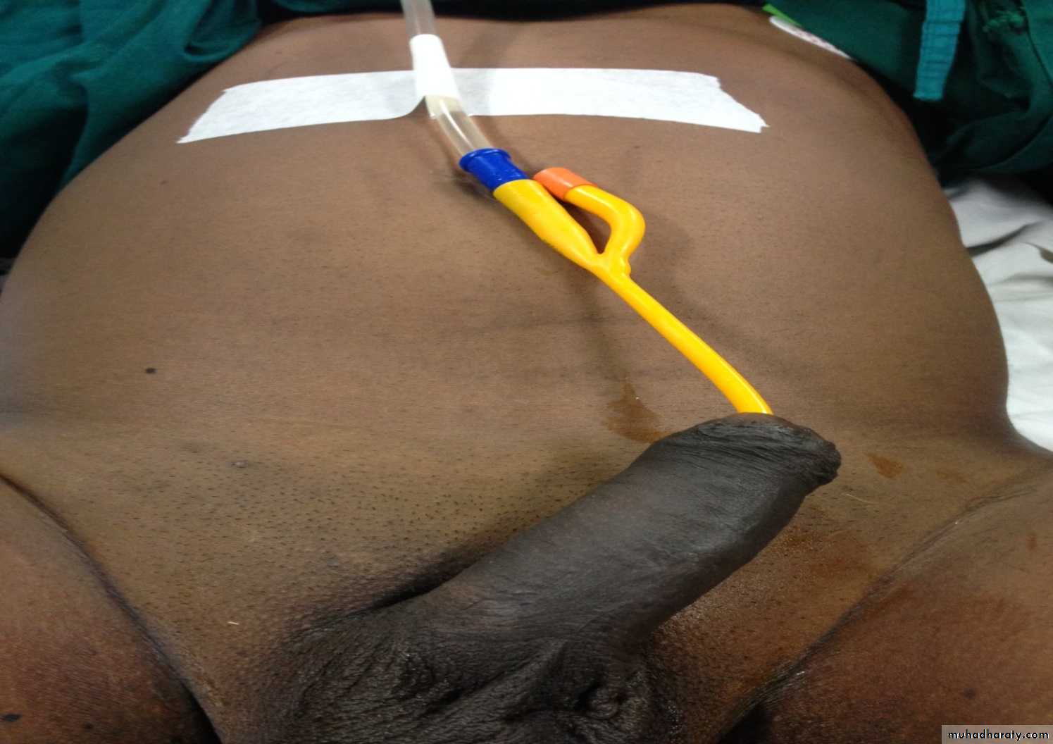 13. Tape to secure the catheter to the leg