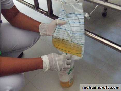• Description of urine, colour and volume drained