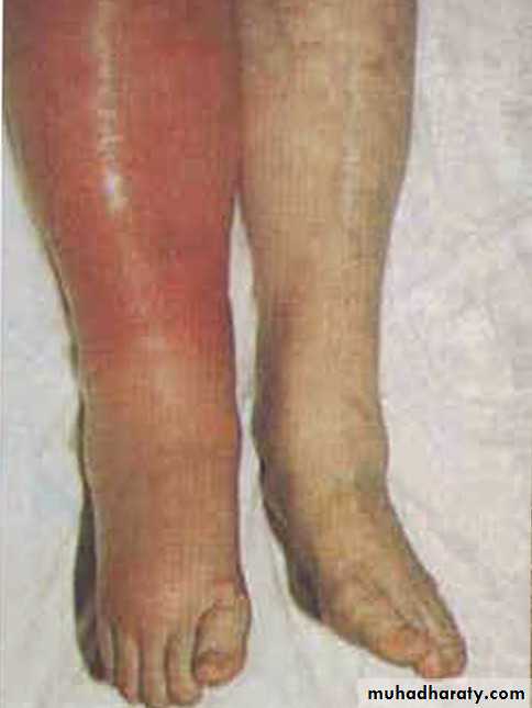 - Lower limb DVT usually start in the distal veins , causing pain , swelling , increase in temprature & dilatation of the superficial veins , it is typically unilateral , but can be bilateral & the clot may extend proximally into the inferior vena cava .