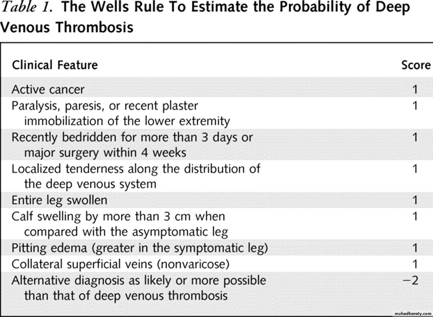 Wells score for DVT