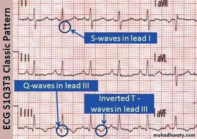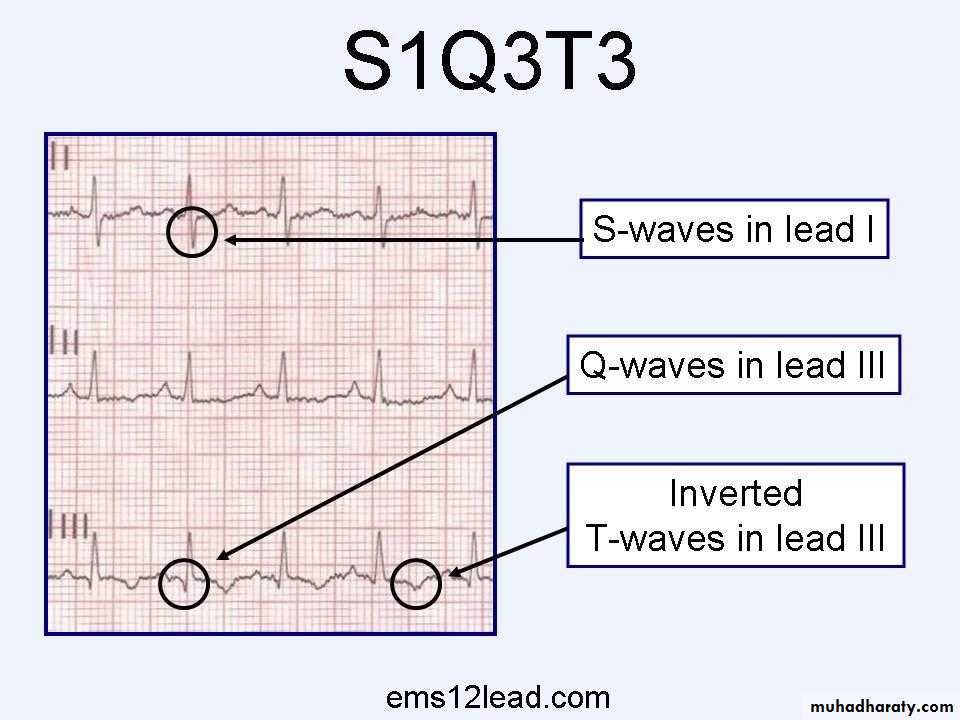 e. S1Q3T3 ( not always present , usually with large emboli) .