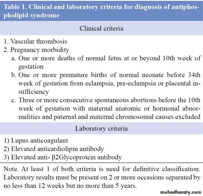 5. Antiphospholipid syndrome :