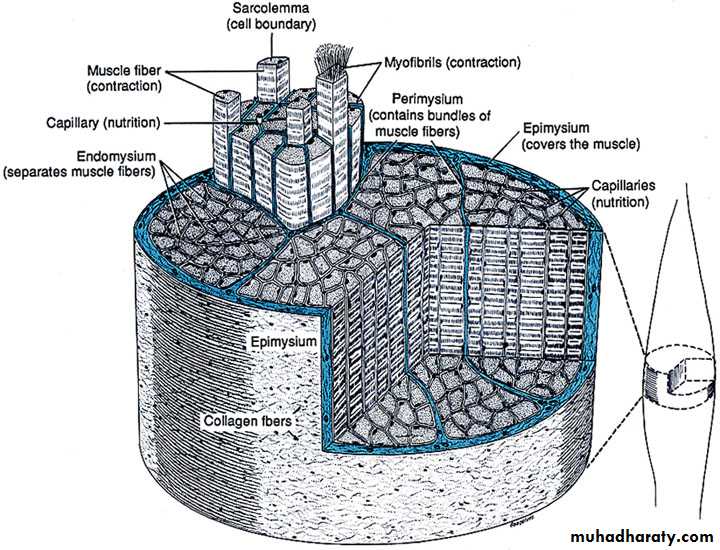• Understand the function and organization of the connective tissue in skeletal muscle (endo-, peri-, and epimysium).