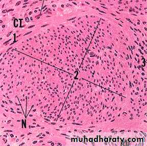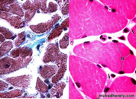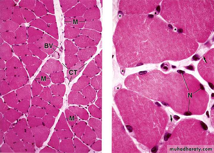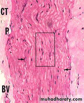 less dense irr. co.t.Endomysium - basal lamina and reticular fibers