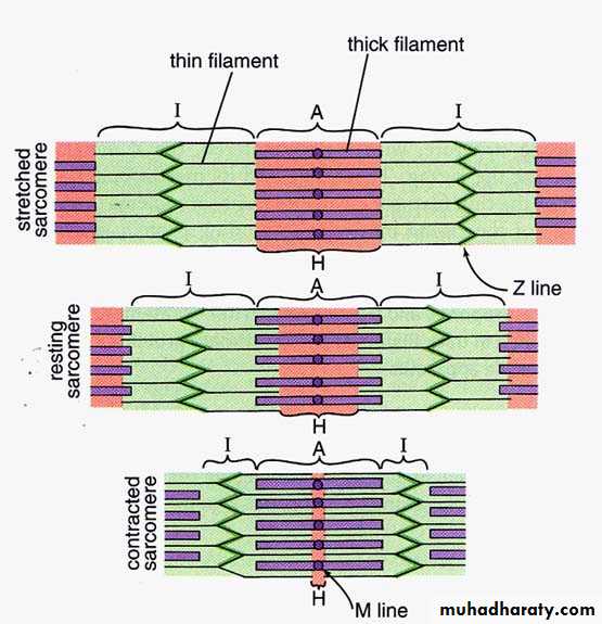 Note: Z lines move closer together; I band and H band become smaller during contractionContraction is Ca+ dependent