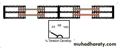 Muscle fibers are composed of many contractile units (sarcomeres)Changes in the amount of overlap between thick and thin filaments allows for contraction and relaxation of muscle fibers