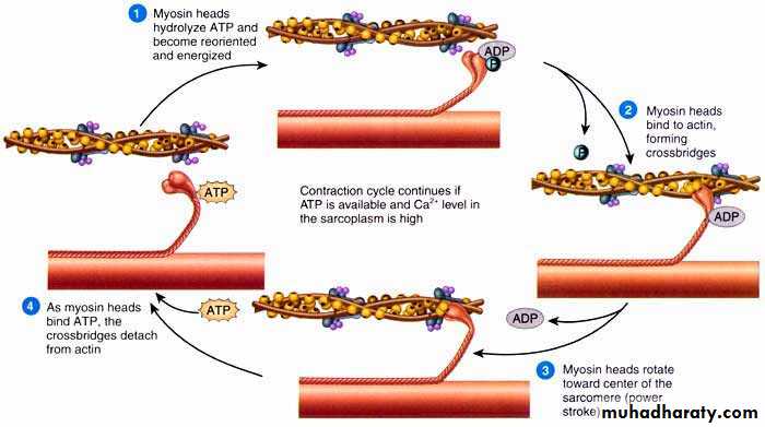 • Cycle continues if ATP is available and cytoplasmic Ca+ level is high