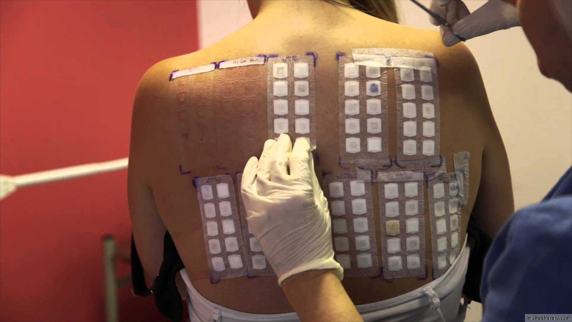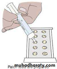 • application of known allergens to the back of & left under occlusion to be seen after 48&96 hr.s.