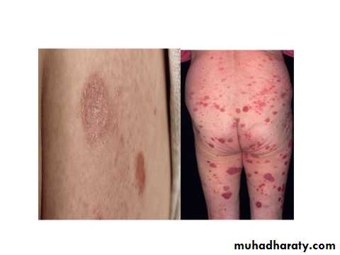 Nummular (Discoid eczema)A chronic, intensely pruritic, coin-shaped erythematous scaly plaques