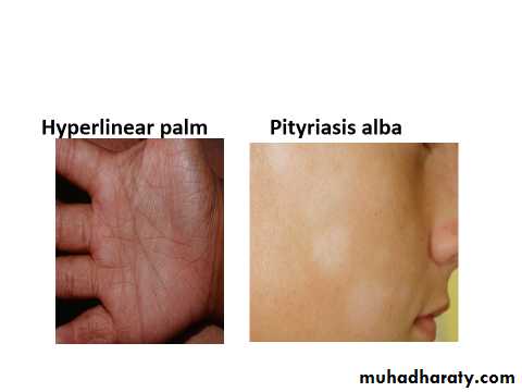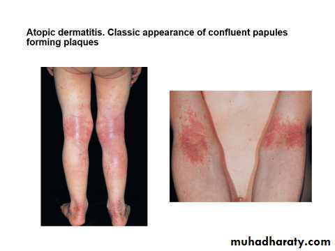 The term atopy was introduced years ago to designate a group of patients who had a personal or family history of one or more of the following diseases: hay fever, asthma, very dry skin, and eczema.Atopic dermatitis (AD) is a chronic, pruritic inflammatory skin disease that occurs most frequently in children, but also affects many adults.