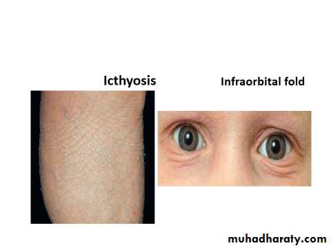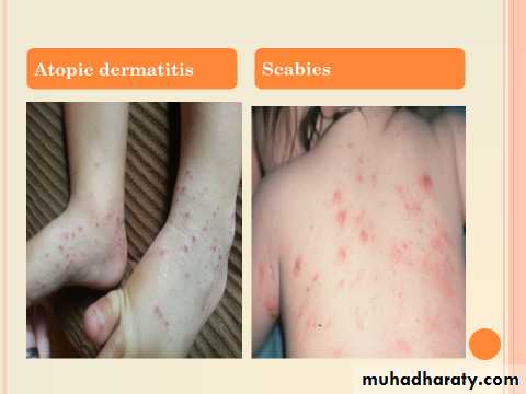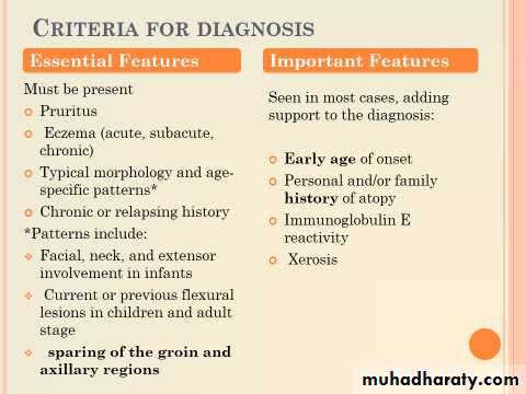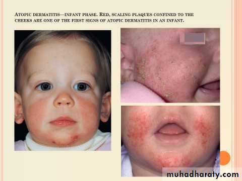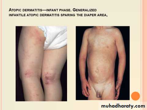 Infants :Facial and patchy or generalized body eczema, with extensor predilection