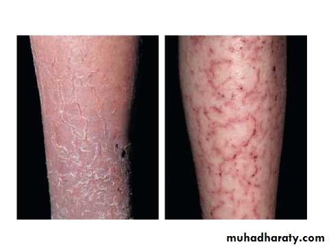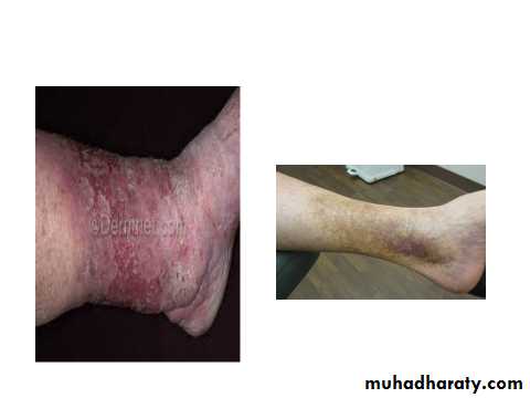 Previously misnamed as stasis or varicosity dermatitis (thought to be due to stasis, but there is NO stasis.Due to Increased hydrostatic ( venous ) pressure and capillary damage with GOOD blood supply , especially seen on the leg