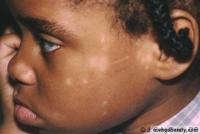 Psoriasis vulgaris.Dermatophytosis (tinea capitis, tinea faciale, tinea corporis),