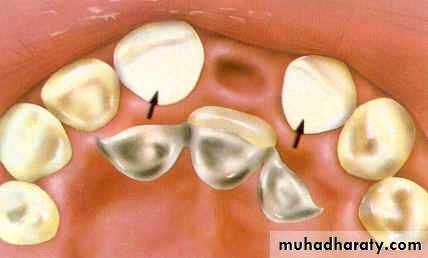 3- Periodontal condition: in cases of gingival recession the finish line should be placed supragingivally to minimize gingival irritation, but this will reduce the surface area of the abutment tooth and decrease the retention.