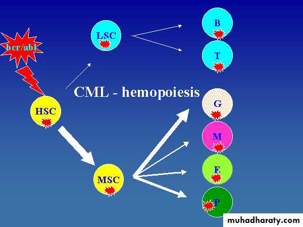 CML is an acquired abnormality that involves the stem cells and is characterized by specific chromosomal abnormality (translocation) between the long arm of chromosome 22 and 9 which is called Philadelphia chromosome (ph). Approximately 95 % of patients with CML have this abnormality.