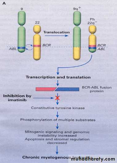 Molecular consequence of the t(9;22) is the fusion protein BCR–ABL, which has increased in tyrosine kinase activityBCR-ABL protein transform hematopoietic cells so that their growth and survival become independent of cytokines