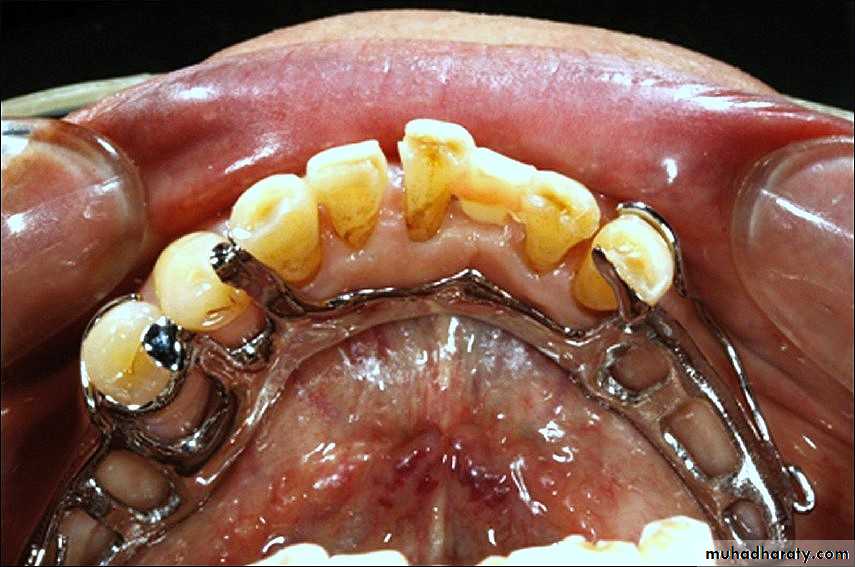 1- If the periodontal support of the remaining teeth is weak → more of the palate should be covered → A wide palatal strap or a complete palate is indicated.