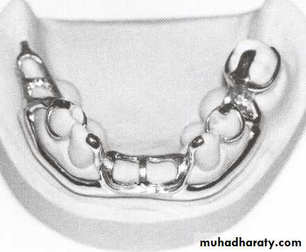 4- When anterior teeth must be replaced → an antero-posterior palatal strap, complete palate, or horseshoe major connector may be used. The final selection must be based on modifying factors such as: