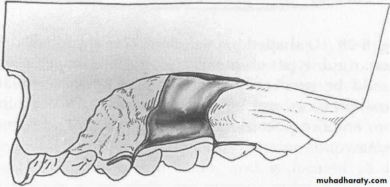 It is a type of the lingual plate recommended in wide interproximal areas. Here the upper border of the lingual plate is cut longitudinally to prevent its display through the wider interproximal spacesLinguoplate Modifications