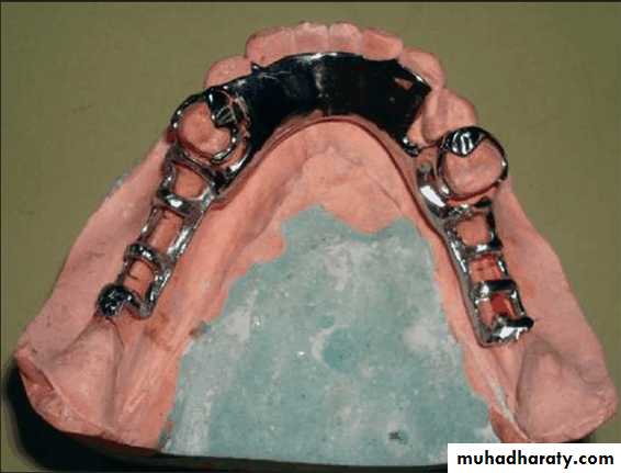 2- If the remaining teeth have adequate periodontal support and little additional support is needed → a palatal strap or antero-posterior palatal bar may be used.