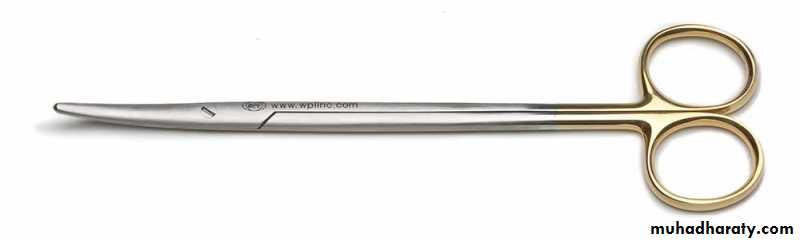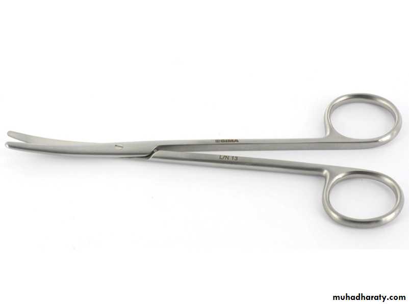 Notice that operating Scissors should not be used for cutting sutures or other material because these material make them blunt , and it become less effective for cutting tissues .