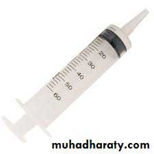 When we use hand piece and bur to remove bone its necessary to use irrigation solutions like normal saline to cool the bur and prevent bone damage by the heat generated during cutting of bone , also irrigation will clean the area of surgery from small debris and chips during the surgical procedure and after finishing before suturing the area , large plastic syringe with blunt 18 gauge needle is used for irrigation purposes, the needle should be blunt and smooth so that no damage to the vital organs or soft tissue can occur , the needle also preferable to be angled to have good and efficient direction of the irrigation fluid .