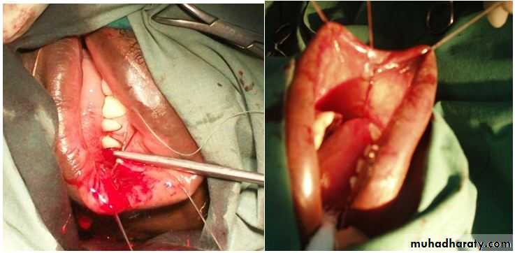 At the end of the procedure the mucoperiosteal flap must be returned back to its original place or position by sutures , the instruments used to do any suturing may include the following :