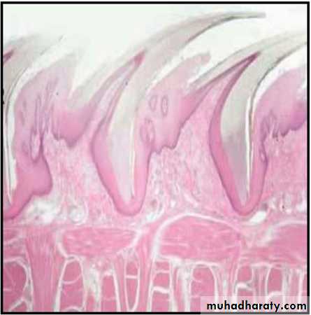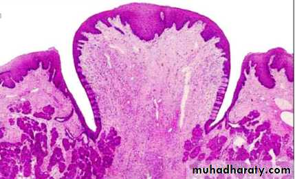 • Stratified non Keratinized epithelium.• Mushroom head.