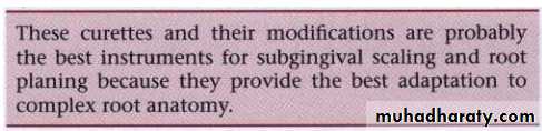 Currettes used for sugingival scaling, root planning and removal of the soft tissue lining the pocket