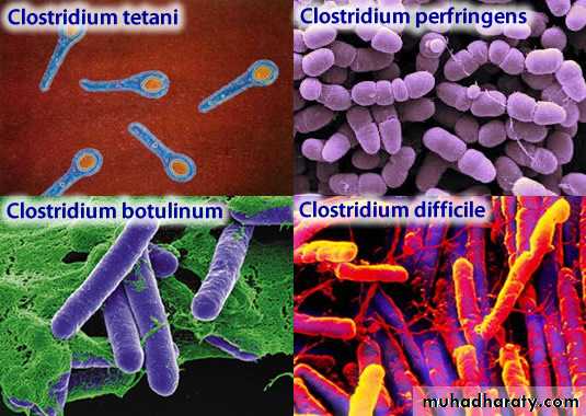 There are four medically important species: Clostridium tetani, Clostridium botulinum, Clostridium perfringens (which causes either gas gangrene or food poisoning), and Clostridium difficile . All clostridia are anaerobic, spore-forming, gram positive rods.1. Clostridium tetani