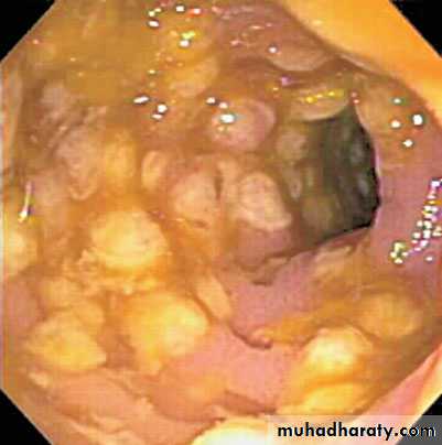 (yellow-white plaques) on the colonic mucosa