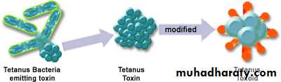Tetanus is prevented by immunization with tetanus toxoid(formaldehyde-treated toxin) in childhood and every 10 years thereafter. Tetanus toxoid is usually given to childrenin combination with diphtheria toxoid and the acellular pertussis vaccine (DTaP).