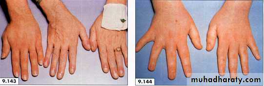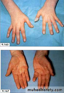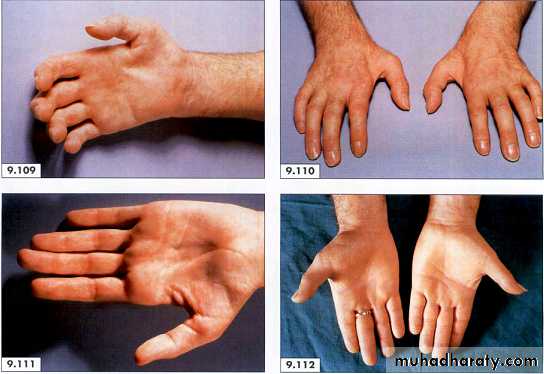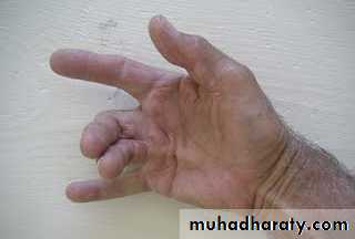 the fourth and fifth fingers. Notewasting of the muscles supplied by the ulnar nerve
