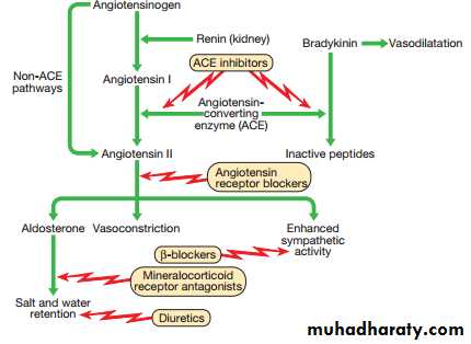 Angiotensin receptor blockers (ARBs; act by blocking the action of angiotensin II on the heart, peripheral vasculature and kidney. In heart failure, they produce beneficial haemodynamic changes that are similar to the effects of ACE inhibitors but are generally better tolerated.Beta-blockers and treatment of chronic heart failure