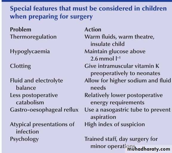In infants and young children differs from the procedure in adults. The chest of the infant is compliant and relatively short in its longitudinal axis so a lateral transverse incision, entering the chest through the fifth intercostals space, is suitable for most operations. It is not necessary to remove or transect a rib. The posterior incision, which curves upwards around the scapula, is rarely required.